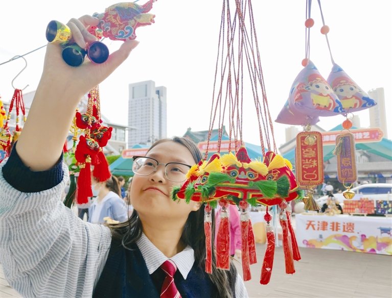 孩子在天津面塑和剪纸的展位前流连忘返,年轻人了解着泥人张彩塑和杨柳青年画的历史……为推动非物质文化遗产保护与传承,助力打造“桥见海河,邂逅浪漫”活动品牌,由天津市文化和旅游局主办,天津市非物质文化遗产保护中心联合南开区文旅局等16个区文旅局,以及杨柳青画社、泥人张彩塑工作室、津药达仁堂、益德成(天津)等单位举办“桥边”非遗展,于本月1日至3日每天下午亮相。