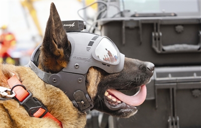 5月8日,中国救援山东搜救犬机动专业支队的搜救犬佩戴远程搜救系统参加演练。5月7日至9日,山东省“使命召唤·齐鲁砺剑-2025”地震灾害救援跨区域实战拉动演练在东营市举行。