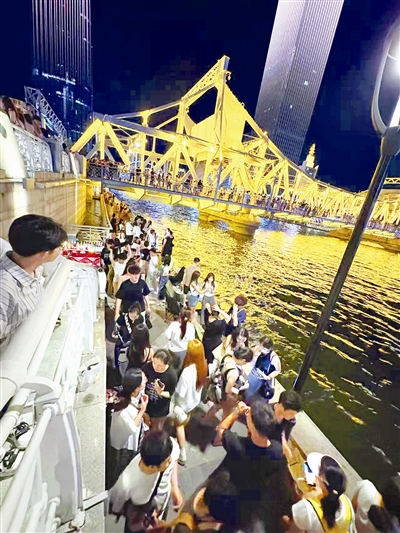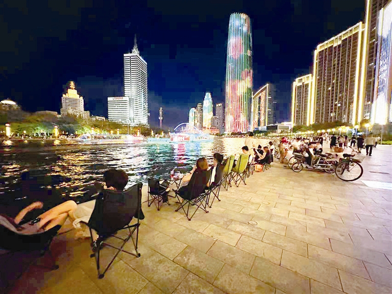 有年轻游客表示“坐酒摊的折叠椅子真是太贵了”,他们告诉记者自己一行人是从广东来天津旅游的,海河很漂亮,为游客准备可以坐下来休息的地方几乎都让摊主给占了,他们没办法只能一直溜达,转了一晚上挺累的,却找不到一处可以坐的地方。