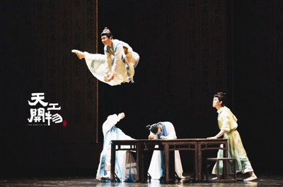 全国巡演中备受关注的舞剧《天工开物》,以舞蹈的形式讲述宋应星历经六次科考落榜,却痴迷于中国劳动人民的智慧和创造,他通过考察梳理中国古代科学技术工艺,著就科学技术百科全书《天工开物》的故事。作为一部集合了中式美学的大型舞剧,该剧通过对明代画卷、建筑、器物、服饰、家具等资料的研究,总结出明代美学“大、巧、简”的特征,以别出心裁的舞台呈现形式,让古老的传统工艺在舞台上焕发出新的活力。