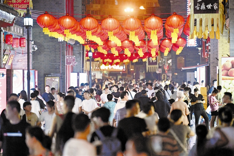 暑期,天津市古文化街景区的夜游持续“升温”,商家推出延时经营、举办现场演出等措施吸引游客,释放夏日经济活力。新华社记者 赵子硕 摄