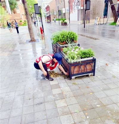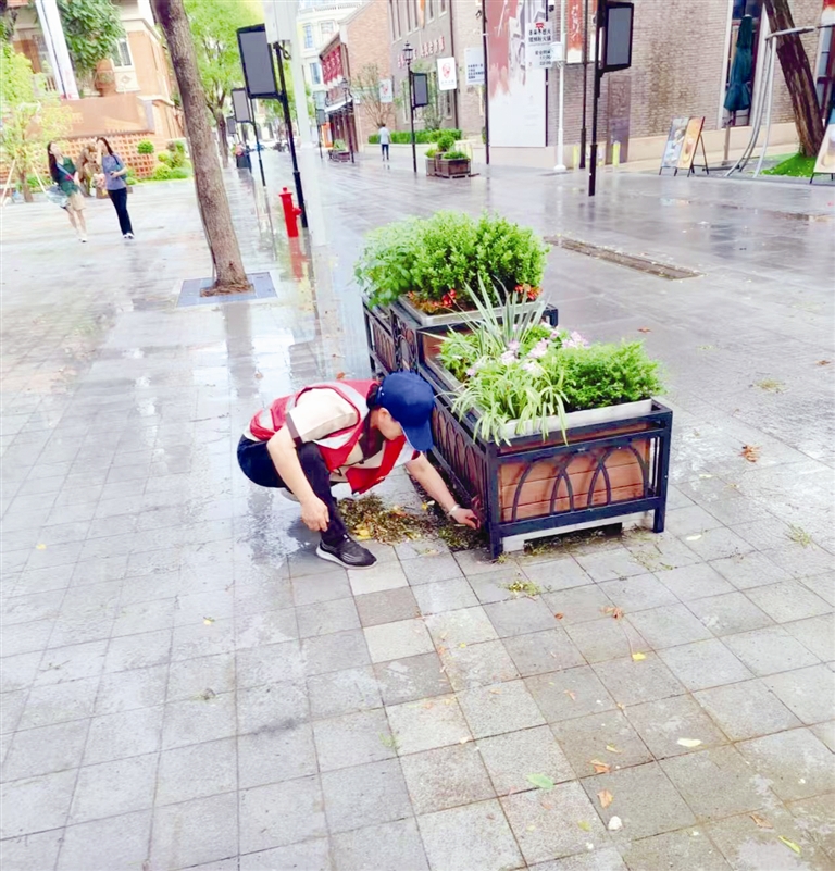 为了达到“席地而坐”的高标准,保洁员也加大了配置,现在每班安排了16个人,基本达到了全天24小时都有人员对区域进行保洁。保洁人员采用巡回式人工扫保,垃圾杂物落地即清。绿地或者是绿化带里的垃圾,安排了专人进行常态化捡拾保洁。此外,还要用“吹、扫、吸”等方式,定期清理积存落叶垃圾,使绿地或绿化带内无杂物悬挂、堆放,绿植表面无明显浮尘,水体保持清洁、干净。