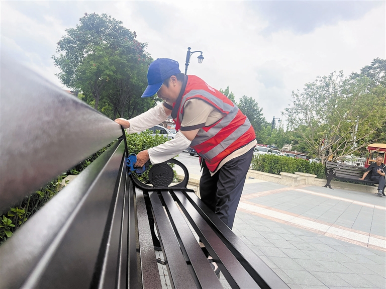 今年民心工程中的市容环境综合治理,在主体任务完成后,目前进入健全长效机制、巩固拓展治理成果阶段。随着暑期来临,本市迎来了大量游客,为将民园广场及周边区域保洁质量提高到“席地而坐”标准,这些区域的保洁都是24小时值守,全力保证游客见不到地面上有丢弃的垃圾等杂物。
