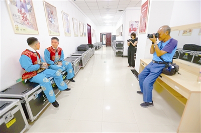 把手机设置成静音、取下了闪光灯,领队老师再次向大家强调“拍摄不可干扰到演员和演出”的“纪律”,“镜观津韵·城记古今”文化创作团首先开始记录后台演员备戏的各种场景。