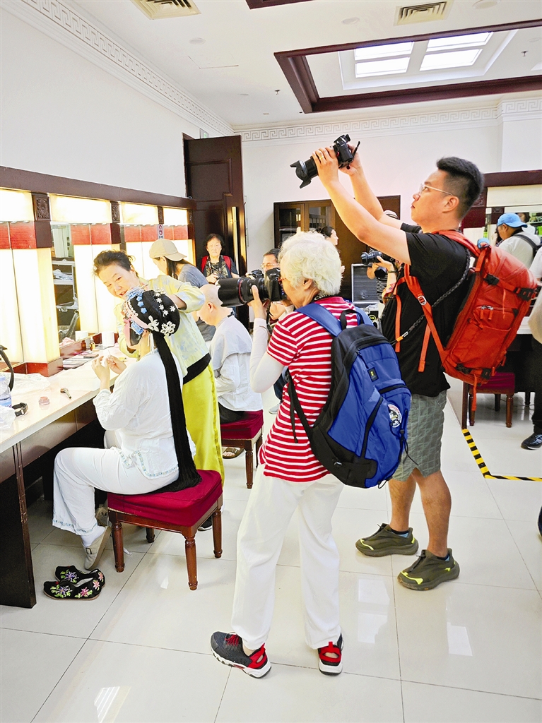 昨日,本报“镜观津韵·城记古今”活动走进天津中华剧院,用镜头记录了国家艺术基金2025年度艺术人才培训资助项目京剧张(君秋)派经典剧目《韩玉娘》彩排的“幕后台前”。近4个小时的活动中,很多成员完全沉醉其中。