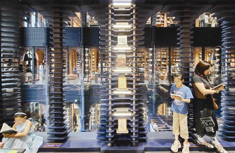 作为津城的网红书店,钟书阁在国庆假期里也安排了丰富多彩的互动活动。3楼“‘墨香古韵’活字印刷”活动吸引了很多小朋友来参与。从中国文字的形成、发展,到活字印刷的发明以及产生的划时代影响,逐步了解后又开始在版上拼古诗词体验印刷,孩子们手上染着墨汁,大声地念出“白日依山尽”“春眠不觉晓”……一早从北京赶来的魏先生和孩子参与了印刷体验,他对记者说:“假期第一天的天津之行,难忘的是满满文化味儿。”