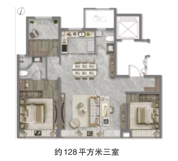 约128平方米三室