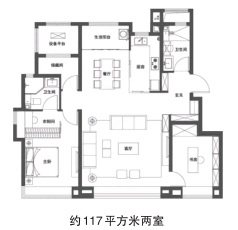 约117平方米两室