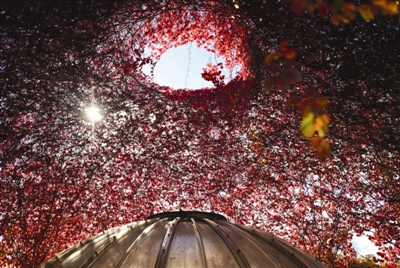 这是10月13日在波兰华沙大学屋顶花园拍摄的秋叶。 新华社发
