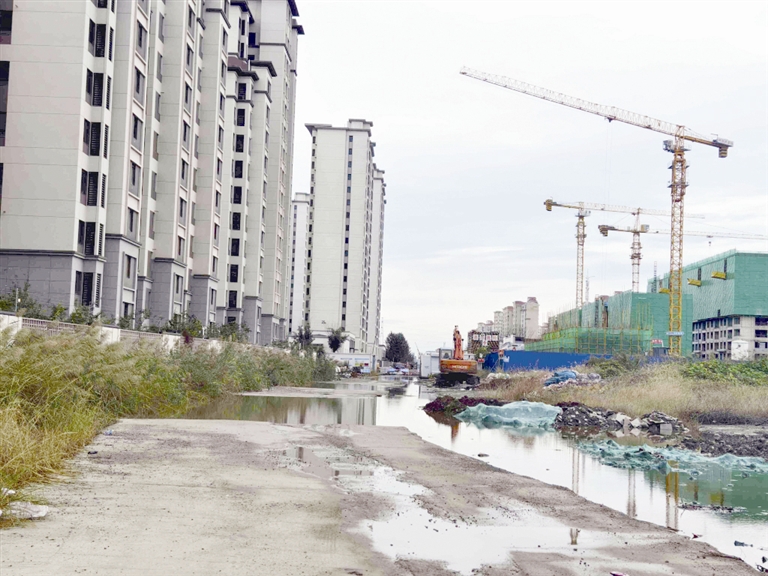 10月10日上午,记者来到武清区新城玺樾熙堂小区,在小区北侧看到,原本开通的小区北门已经封闭,北门附近的翠柳道东段一片泥泞,西侧则用钢板封闭,并未开通。