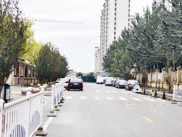 根据周女士和几位居民的指引,记者来到小区西侧的亨运路,该条道路位于新城玺樾熙堂和新城玺樾春秋小区之间,去年8月记者来时,该条道路还像“小河”一样,路面上满是杂草和垃圾。现如今,该条道路已修缮一新并通车。“亨运路开通以后,小区就开放西门,封闭了北门。”居民说,但是亨运路北侧到现在仍是断头路,没有打通。记者看到,亨运路通向翠柳道方向,用绿色的板子封闭着,透过板子向内看,道路表面基本完成铺设。由于两条道路迟迟没有打通,去往杨村第十二小学和杨村第十中学无法从此通过。“这条路彻底打通,从两个小区步行走过去,只需要不到5分钟的时间。然而现在,必须绕一大圈。”