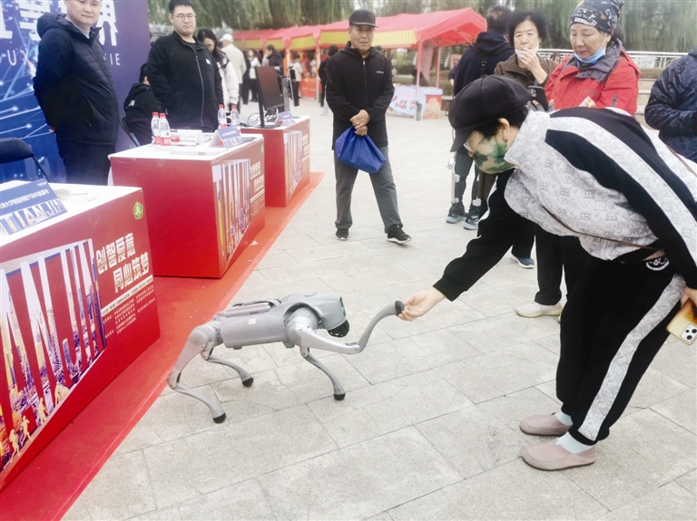 这边,一位坐轮椅的女士正向天津师范大学的心理志愿者诉说着自己的“心事”——总是一个人在家,觉得特别孤独。志愿者在认真倾听,并给出一些解决的办法。那边,城建大学的志愿者带来了好玩儿的拳击游戏等运动项目,让来逛市集的残障人士在快乐运动中增强自信。科技展示区是最吸睛的区域之一。无障碍导向标识系统、手语翻译系统、助力行走辅具、盲用智能手机软件……让市民近距离感受到科技在辅助残障人士生活领域的创新应用。最可爱的就是能提供情绪价值的机器狗,能陪“主人”聊天,能握手,会打滚卖萌……为残障人士或老年人提供一定的生活辅助服务。手工艺品售卖区陈列着中药香包、艾草锤、车挂等精美的手工艺品,每一件都饱含着残疾人创作者的心血与情感。每一位购买者都在感动之中付出了爱心。便民服务区提供了心理咨询、身体检查、法律服务……志愿团队用专业技能诠释着助残的实际意义。