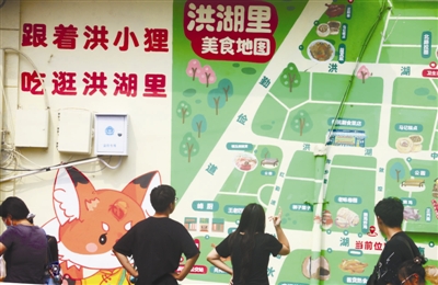 | ▲洪湖里美食爆火后,不少游客组成“打卡小队”,穿梭于街巷中。 ?西北角商圈吸引了各地游客。 |