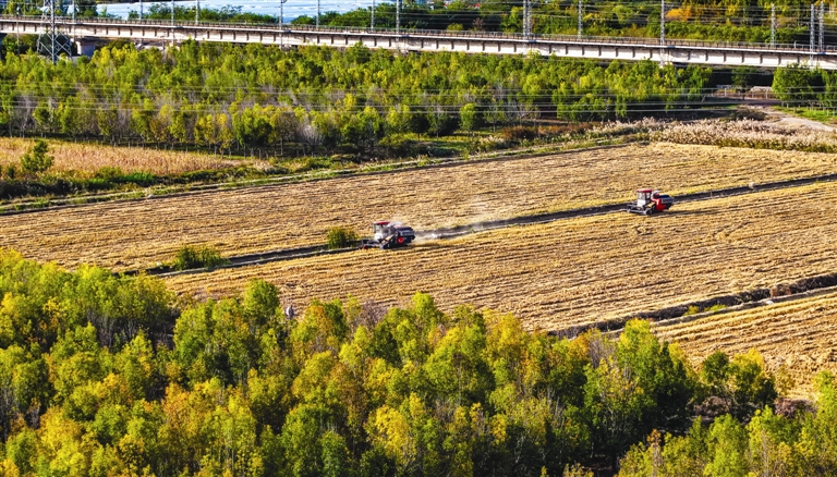 近日,西青区张家窝镇周李庄村股份经济合作社400亩“津原U99”水稻开镰,喜迎丰收。 记者 潘立峰 摄