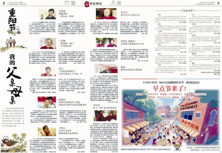 九九重阳节,本报特别策划了一期“重阳节·我的父亲母亲”,借着文字向天下所有的父亲母亲表达了爱和感谢。