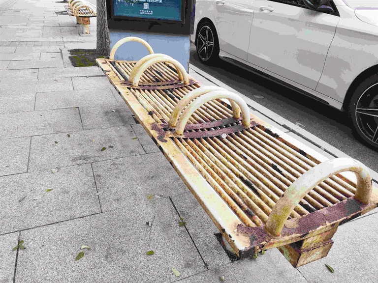 | 休闲凳锈蚀严重 市民刘女士反映,北辰区京津路与果园北道交口,人行道上的白色金属坐凳锈蚀斑斑,影响市民使用。 文/摄 记者 庄媛 |
