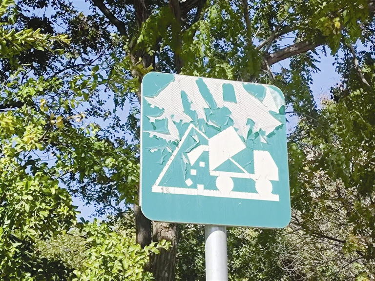 | 提示牌发生破损 市民孙女士反映,南开区南翠屏公园北侧进出口处,一块提示牌发生破损,希望相关部门抓紧更换。 文/摄 记者 胡智伟 |