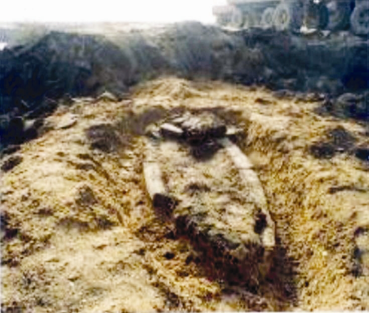 在贝壳堤上,发现了我们祖先活动留下的遗存,包含陶网坠这样的渔具器物,以及有可能被人类食用后遗弃的贝壳形成的残存贝丘。在第三道贝壳堤上,就发现了战国时期的墓葬和大量器物,包括铜剑、瓮棺;而在靠近现代海岸线的更年轻的第二道、第一道贝壳堤内,同样发现了墓葬和大量陶片、砖块、陶网坠、铜币、骨器等战国以来直至清代的人类遗存。以安志敏、李世瑜先生为代表的老一辈历史地理学家、考古学家,根据当时相继发现的众多考古遗存,纠正了谬传甚广的渤海湾沿海平原是“‘无古可考’的‘海滨弃壤’”的传统认识。我们也在上古林的第二道贝壳堤内发现了金代“船形墓”。