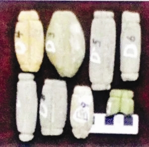 该采土场地表以下4米深的土层,是公元5世纪南北朝以后受高潮水断续影响的、从潟湖盐沼逐渐变为河流环境的灰色-黄棕色泥层。在深度4米以下,转为棕灰色的、形成于潮间带环境的海洋砂泥层。其中在4.0米至6.7米层段内,夹有四层厚度分别为20厘米至30厘米的贝壳层。贝壳种类十分丰富,有二十余种之多。在第三贝壳层中,与贝壳、泥砂混在一起的,还有大量的灰陶片和红陶片、8枚完整的陶网坠和牛肩胛骨制的铲形骨器。这些陶片经天津考古学家陈雍、梅鹏云等鉴定,均属秦汉时期。