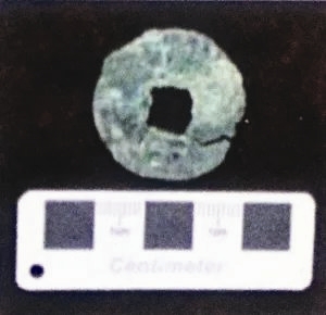 在该层中还发现了一枚锈蚀的、中有方孔而周缘无廓的铜钱,专家鉴定认为是秦国所铸的“半两”。但是,在秦国本土初期流通的“半两”,比它稍大而厚,中间是圆孔,且周缘有廓。此类初期的“半两”,不大可能流通到距战国时秦地约800公里的当时渤海湾的海边。因此,考古学家判断在第三贝壳层中出土的这枚铜钱,应铸于战国时期的秦国末期。这类后期的“半两”钱一直流通到公元前118年前后,才逐渐被汉武帝时所铸的“五铢”钱取代。