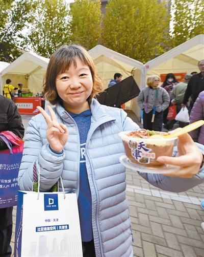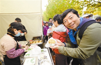 “我就是奔着赵大肚子烧麦来的,买了好几种,牛肉的、西葫虾仁鸡蛋的……每样都好吃。”家住津南区的宋阿姨特意赶来寻找自己钟爱的美食。来了以后发现早点节上好吃的太多了,于是给朋友捎、给亲戚带,收获满满的快乐。