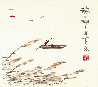 深秋,湖上,落日,芦花,一叶扁舟,两个姑娘。姐妹俩捞回我晚餐桌上的那盘河虾。