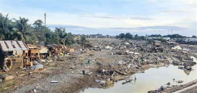 11月6日在菲律宾宿务省航拍的受灾现场。 新华社发(菲律宾红十字会供图)