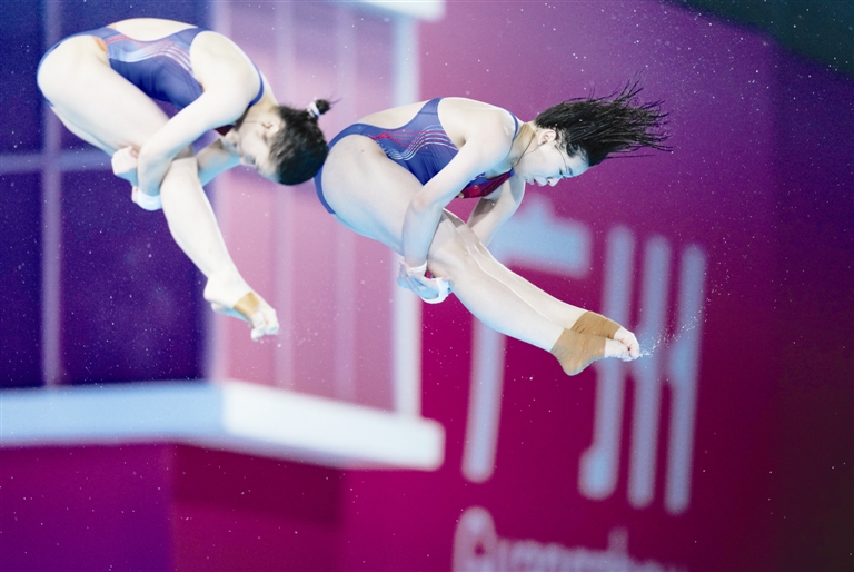 备受瞩目的十五运会跳水女双10米台决赛中,上海组合陈芋汐/掌敏洁以总分350.22分强势夺金,受到脚伤困扰的全红婵与王伟莹搭档,落后38.46分,仅获得第五名。全红婵也就此结束了本届全运会之旅,赛后她坦言,能够帮助广东队夺得团体冠军已经非常好了。新华社发