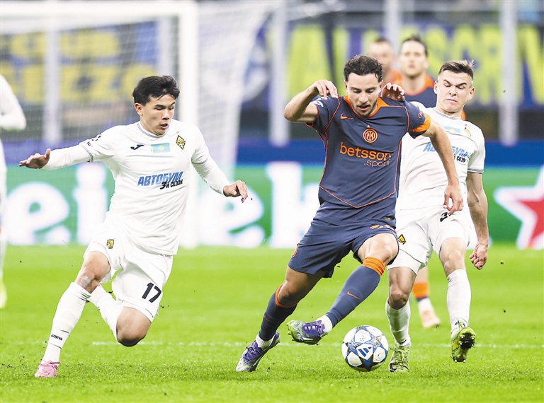 欧冠联赛第四轮,国米主场2比1战胜阿拉木图凯拉特队。 新华社发