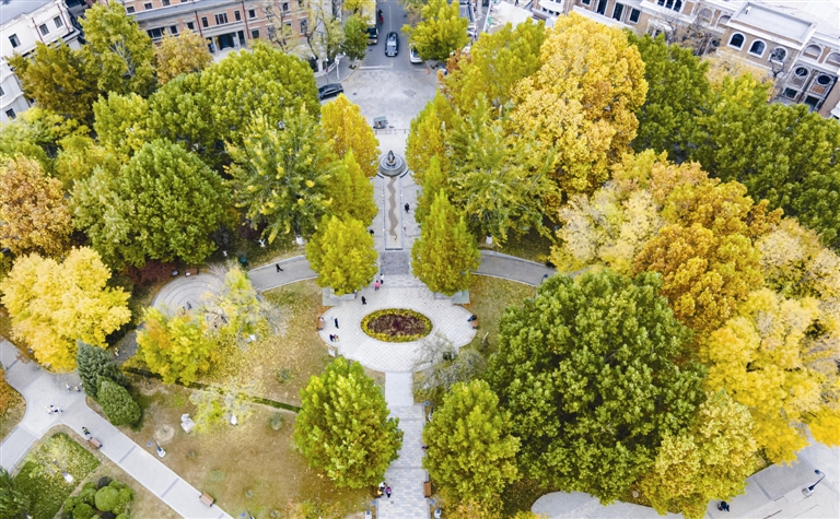 连日来,本市和平区中心公园、新华路等历史街区内树木黄绿交织,与沿街洋楼相映成趣,成为游客沉浸式感受津城秋韵的好去处。记者 吴迪 摄