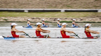 昨天,赛艇项目继续进行多项预赛。在女子四人单桨预赛中,由葛一潞、陈依婷、郭雅欣、王清怡组成的天津队(后),以4分52秒33排名小组第二,顺利晋级A组决赛。与此同时,天津队的杨振禹/李泽鹏、王丹/刁睿还分别晋级男子双人双桨和女子双人双桨半决赛。新华社发