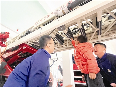 “消防员叔叔,你们爬云梯的时候不怕高吗?”“这个‘大块头’消防车能装多少水呀?”