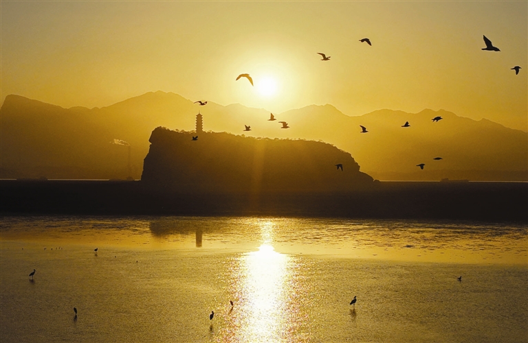 候鸟在江西省湖口县鄱阳湖鞋山水域栖息(11月26日摄,无人机照片)。连日来,东方白鹳、白琵鹭等珍稀越冬候鸟,或翩跹栖息于滩涂,或低头在浅水中觅食,绘就成一幅和谐共生的生态画卷。