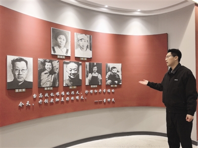 “大家看到的电视剧《沉默的荣耀》中交通员德英跳海的情节,正是以董健民烈士为原型创作的。”刘祥庄村党务工作者吕欣欣站在序厅介绍,“董健民同志是机要密码、国家安全战线的革命先烈代表人物之一。1946年11月,为保护机要密码,她与丈夫钟琪、儿子明明一家三口毅然跳海,光荣牺牲。”
