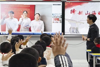 正在新疆哈密开展支教工作的第27届研究生支教团成员马克思主义学院的杨凱钧,早早来到教室,用生动的学科视角为孩子们做足“课前铺垫”,为整场思政课拉开了温暖的序幕。