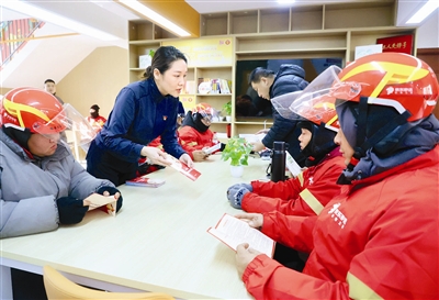 近日,红桥区总工会联合红桥区司法局、和苑街道总工会,在和苑街道新就业群体驿站开展政策宣讲活动,面向新就业形态劳动者,解读权益保障、职业发展等相关政策。记者 孙立伟 摄