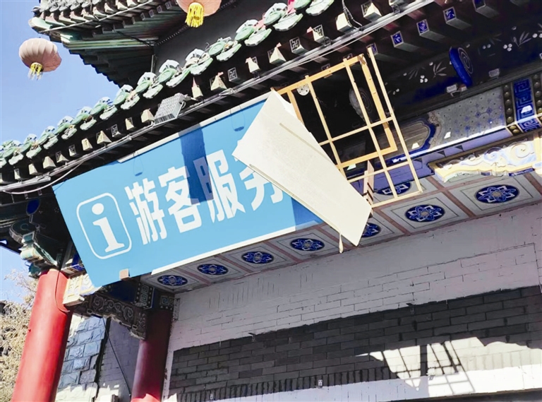 | 游客中心牌匾破损 市民刘女士反映,南开区鼓楼东街靠近城厢中路附近,路边空置的“游客服务中心”商铺牌匾局部出现损坏脱落,望尽快修复。 文/摄 记者 狄慧 |