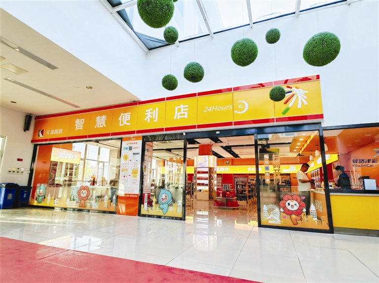 服务区便利店也玩出“津味儿”新花样,将地域文化融入商品陈列与空间设计,打造“一区一特色”主题门店。在滨保高速七里海服务区,升级后的智慧便利店成了新打卡点。杨柳青年画衍生品、泥人张迷你摆件等非遗文创与武清小站稻、汊沽港火腿等农特产品琳琅满目,扫描“驿美津选”二维码就能线上下单、线下提货。此外,京哈高速宝坻服务区、京沪高速泗村店服务区、蓟州高速蓟州服务区的便利店也全面升级为“服务+”样板间。“既能买老字号,又能挑新创意,这趟没白来。”准备返程的游客陈女士提着“驿路津彩”联名礼盒笑道,24小时营业的智慧柜台还能随时补给旅途所需。