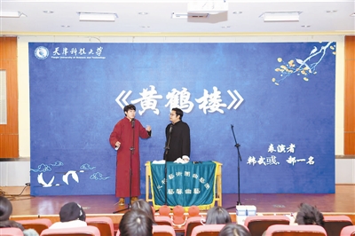 《黄鹤楼》《武坠子》《口吐莲花》……这些传统的经典相声段子,大学生们演得中规中矩。《大话鲁迅》《家有宠物》等作品都是学生们的创新作品。在2025年的年末,天津科技大学爱好曲艺的同学们分别在两个校区搞了以“曲韵流芳 艺启新程”为主题的“封箱”演出。这是“艺馨曲艺社”献给全校师生的年终“喜剧大会”,也是传统曲艺与校园青春的一次激情碰撞。同学们磨段子、练贯口、耍快板……把所有的“包袱”和绝活毫无保留地“抖”给大家。