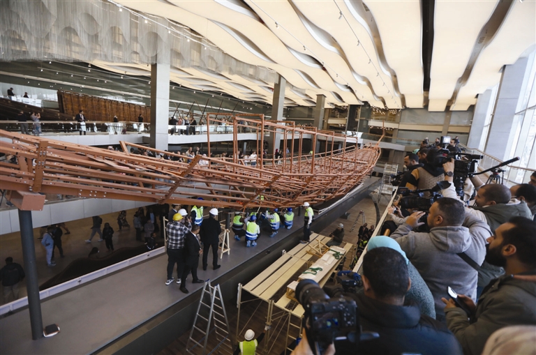 古埃及法老胡夫的第二艘太阳船组装工作12月23日在大埃及博物馆启动。埃及旅游和文物部表示,这标志着自2022年启动修复以来,该项目已进入“最关键阶段”。