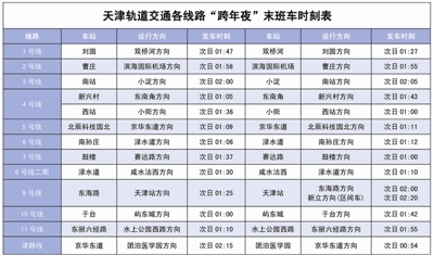 记者从轨道交通线网中心获悉,根据乘客出行需求,2025年12月31日天津轨道交通全网延长运营服务时间2.5小时。