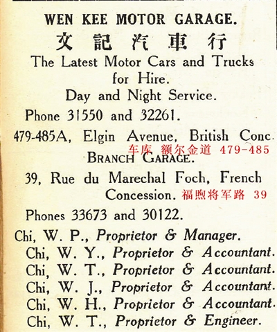 我14岁就为家里的元祥鲜花庄盯买卖,店面位于今天三义庄、九江路、马场道头邻,可以说,当年元祥鲜花庄与文记汽车行、文记礼服部都是“老交际家”(即关系很好的老买卖家)。两家彼此走动得还很频繁。他们电话是二局三六二八。