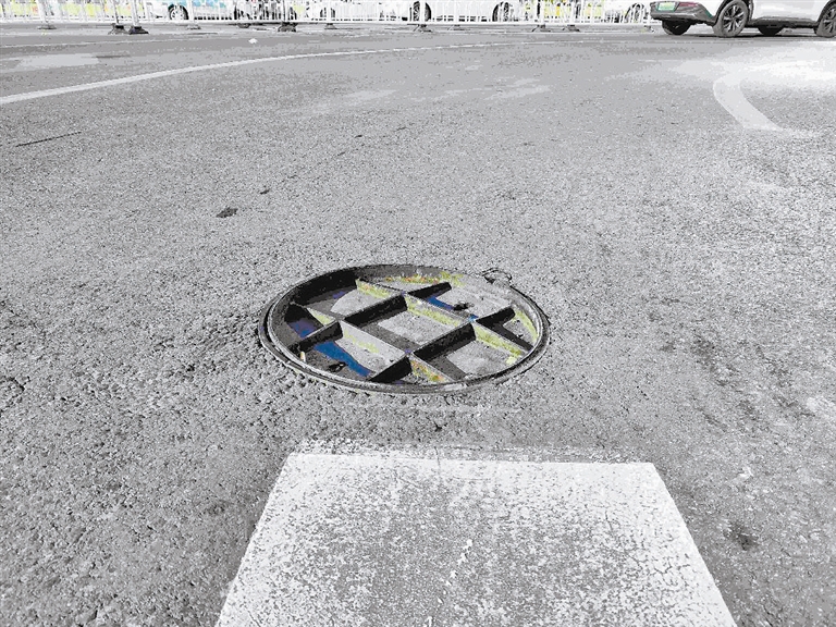 市民高先生反映,和平区兴安路与和平路交口,道路中央一个圆形井盖被反扣在井口上,其背面的片状锋利金属龙骨极易损伤车辆轮胎。 文/摄 记者 庄媛