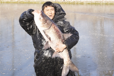 青盛河岸两侧人头攒动,冰面之上渔民们身着厚重的棉袄、脚蹬防滑胶鞋,手持冰镩、抄网等工具,随时待命。“起网喽!”随着领头人一声洪亮的号子,几名渔民合力拉动粗壮的渔网,银白色的白鲢、花鲢顺着渔网缓缓露出水面。“快看,好多鱼!”岸边的居民们踮着脚尖、伸长脖子,欢呼声、喝彩声此起彼伏。渔民们脸被冻得通红,却难掩丰收的喜悦,手脚麻利地将捕获的鲜鱼分拣、装袋。刚被捕捞上岸的鲜鱼随即在现场开售,让大家把象征“年年有余”的“福气鱼”带回家。