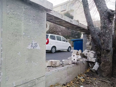 市民孙女士反映,河北区江都路如东里24/26栋对面的休闲花园内,一处围墙出现破损,有碍观瞻,希望相关部门抓紧修复。 文/摄 记者 胡智伟