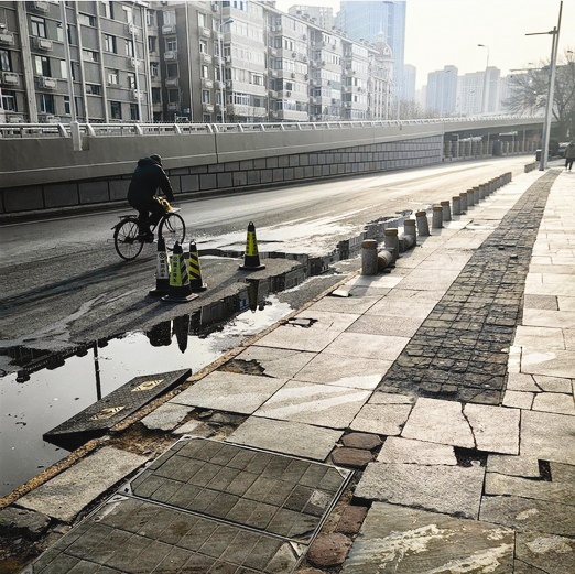 1月4日上午,记者来到金钢桥旁的河北区中山路,在有巢公寓一侧看到了这段跑冒污水的道路。跑冒的污水在自行车道边淤积,车辆不断碾轧污水,整条道路都湿漉漉的。李先生表示,元旦假期前他就发现这里有污水跑冒的情况,尝试向排水部门反映,但是对方表示不在其管辖范围。