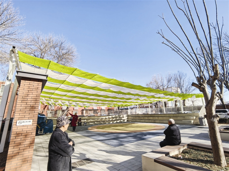 芥园大堤社区党委书记张金在现场介绍,遮阳篷的设置来自居民提议,“群众需要什么,我们就改进什么”。公园功能还将持续优化,与天津城投集团共同收集意见,让“小改造”精准对接“大需求”。