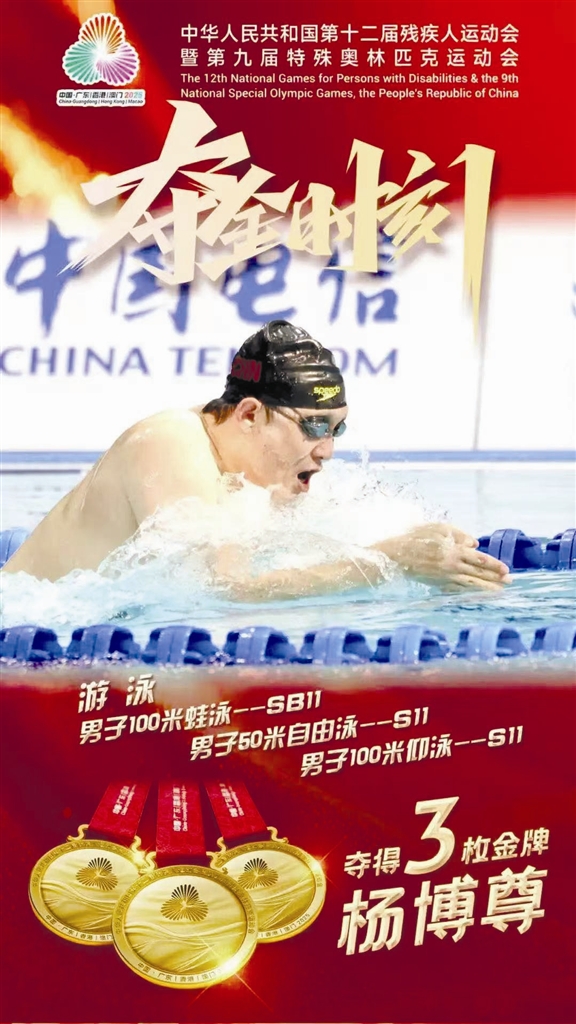这是天津代表团在本届残运会游泳项目的首金,也是39岁的杨博尊第六次全国征程的“开门红”。它点燃了团队的士气,也向所有人宣告:那团名为“热爱”的火焰从未熄灭。