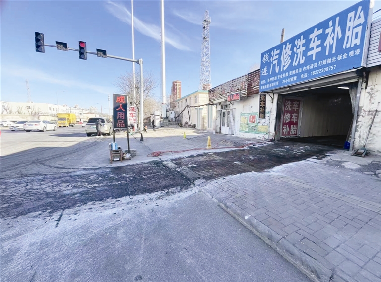 和平区新兴街综合执法大队经现场核查,责令洗车店立即停止在店外公共便道开展清洗收尾作业,要求商户于2026年1月12日前,对污染湿滑的路面进行彻底清理,恢复道路原貌;同时规范商户经营行为,要求其将全部清洗作业转移至店内合规区域进行。