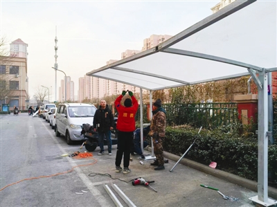 为切实解决这一民生难题,盛福园社区组织网格员走访入户倾听居民心声,联合物业公司多次进行商议讨论、实地勘察选址,最终确定在12处居民需求最迫切、空间条件最适宜的点位,新建17个智能充电车棚。
